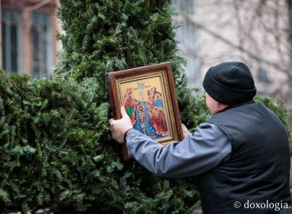 (Foto) Veșmânt din cetină și crizanteme: Cum a fost împodobită Crucea de Bobotează la Catedrala Mitropolitană din Iași